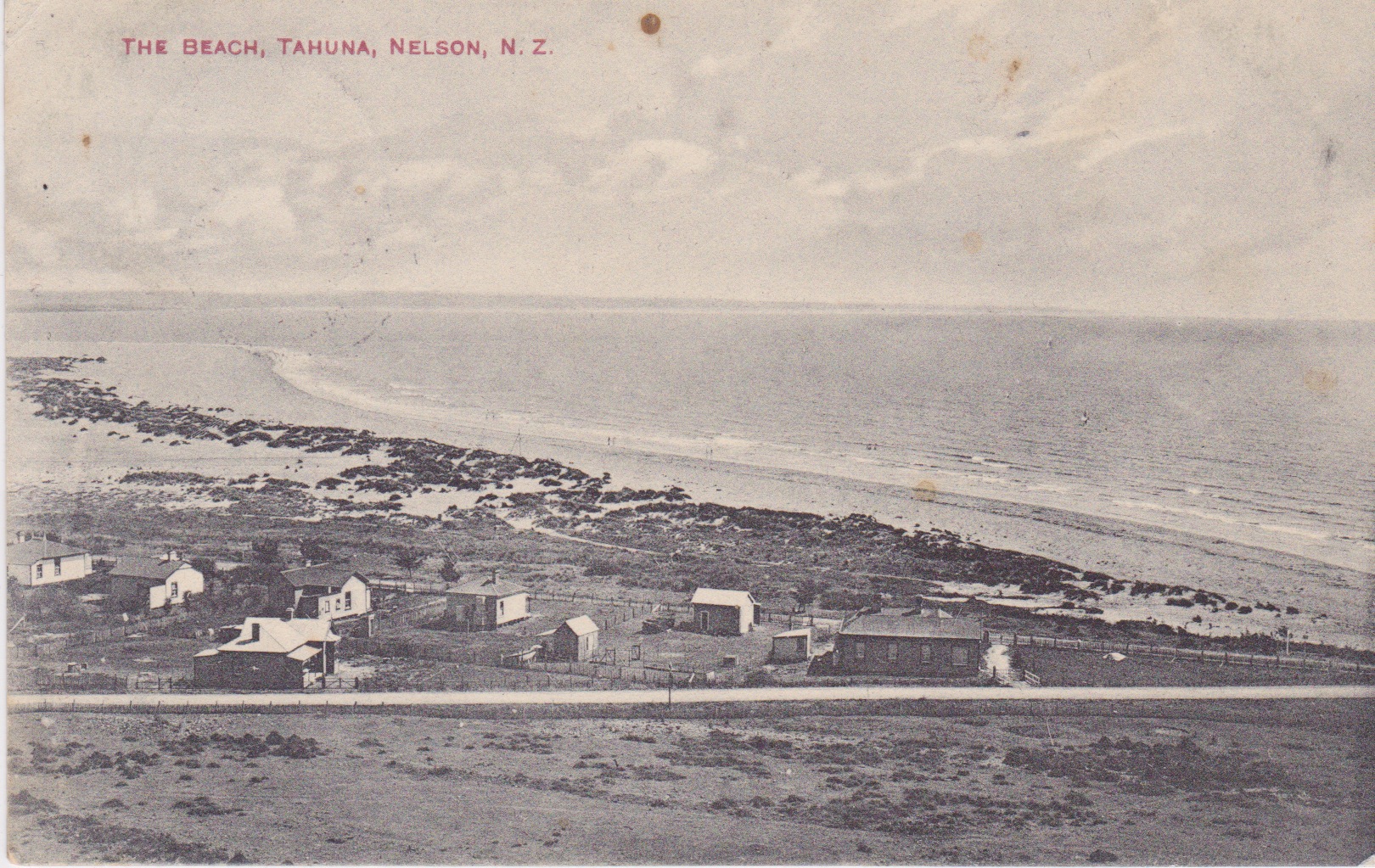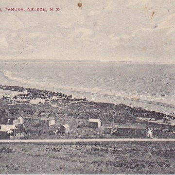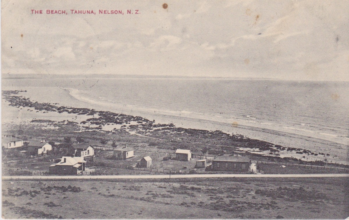The Beach, Tahuna, Nelson. N.Z. Postcard from the ‘Alf. Robinson Series’.