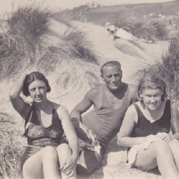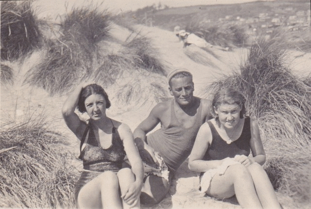 Bathers in the sand dunes at Tahunanui Beach, 1933