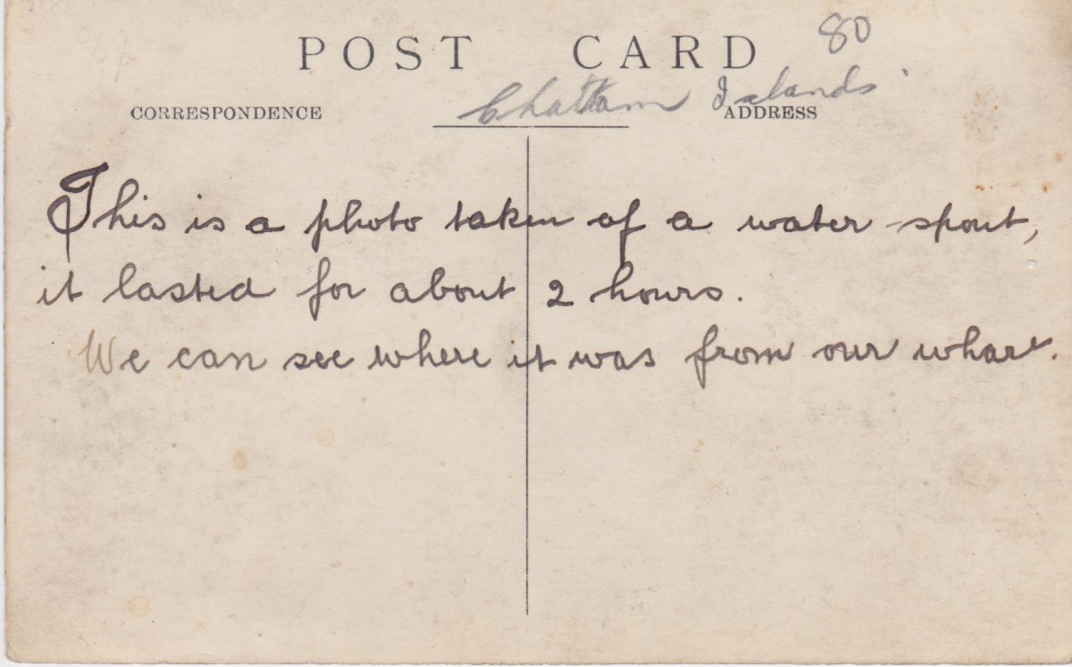 Published February 5, 2013 at 1632 × 1017 in Earliest Known Photograph of a New Zealand Tornado Reverse side of 1912 Waterspouts Postcard Lemuel Lyes Collection Share this: Share on X (Opens in new window) X Share on Facebook (Opens in new window) Facebook Share on Reddit (Opens in new window) Reddit Share on Pinterest (Opens in new window) Pinterest Like Loading... ‹ Return to post Leave a comment Cancel reply Δ