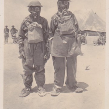 Soldiers wearing gas-masks in the Western Desert, 1941