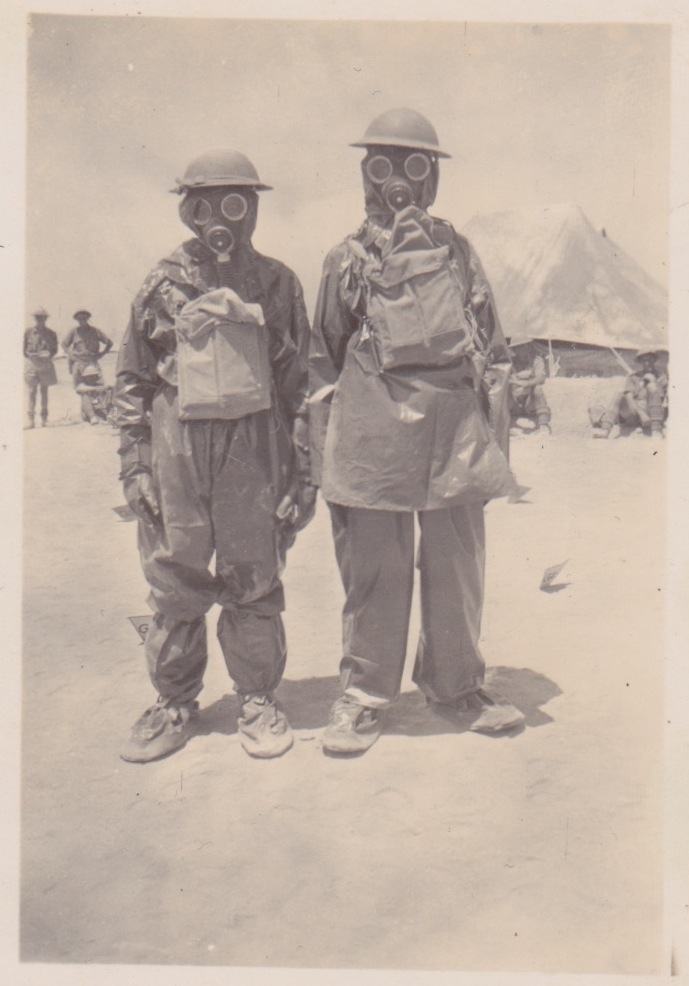Soldiers wearing gas-masks in the Western Desert, 1941