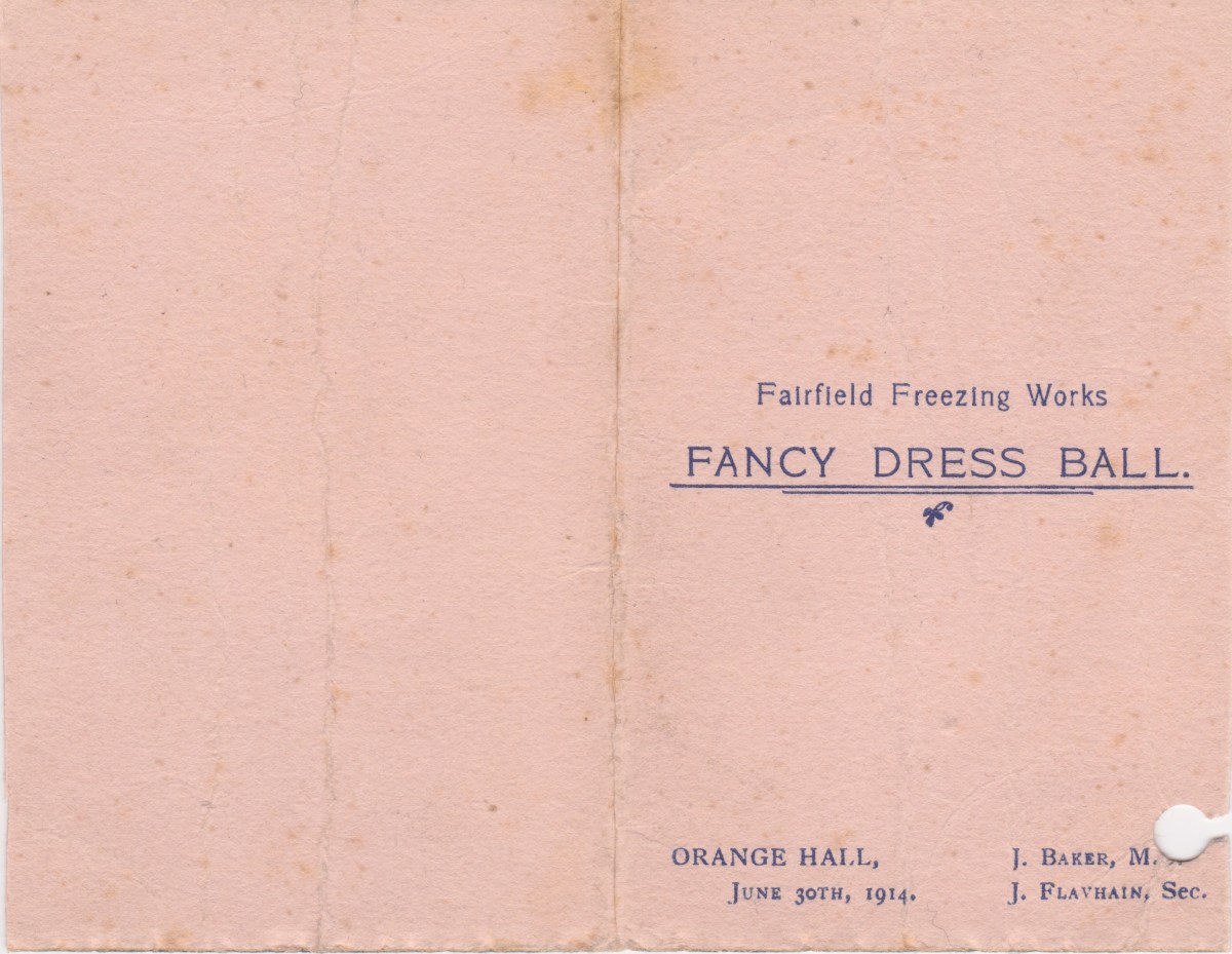 30 June 1914 Fairfield Freezing Works Dance Card