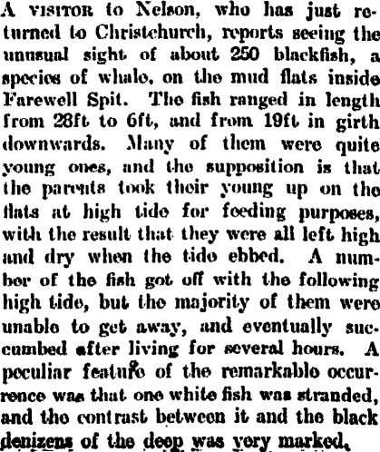 Published January 26, 2014 at 419 × 498 in A Short History of Whale Strandings in New Zealand New Zealand Herald, Volume XLVIII, Issue 14635, 22 March 1911, Page 8 Share this: Share on X (Opens in new window) X Share on Facebook (Opens in new window) Facebook Share on Reddit (Opens in new window) Reddit Share on Pinterest (Opens in new window) Pinterest Like Loading... ‹ Return to post Leave a comment Cancel reply Δ